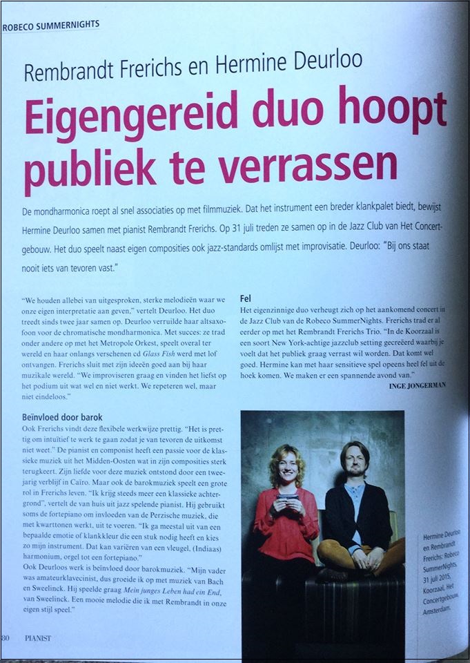 ‘The harmonica quickly calls up associations with film music. That the instrument has a broader sound palette is proven by Hermine Deurloo together with pianist Rembrandt Frerichs.’